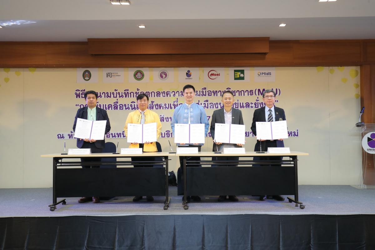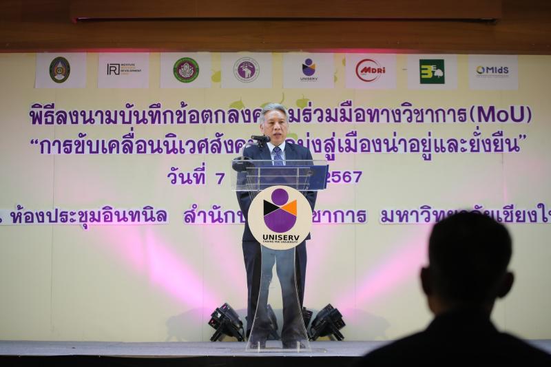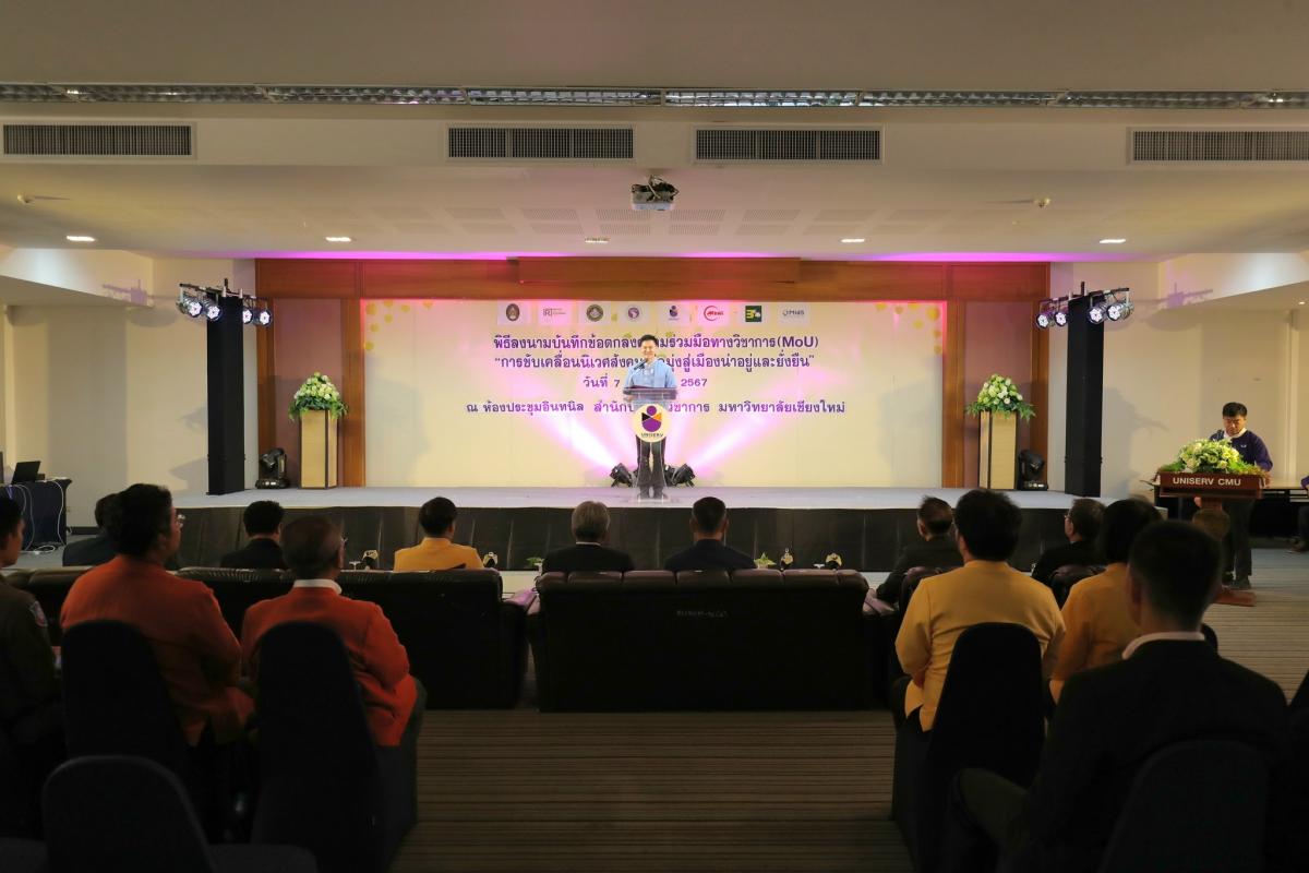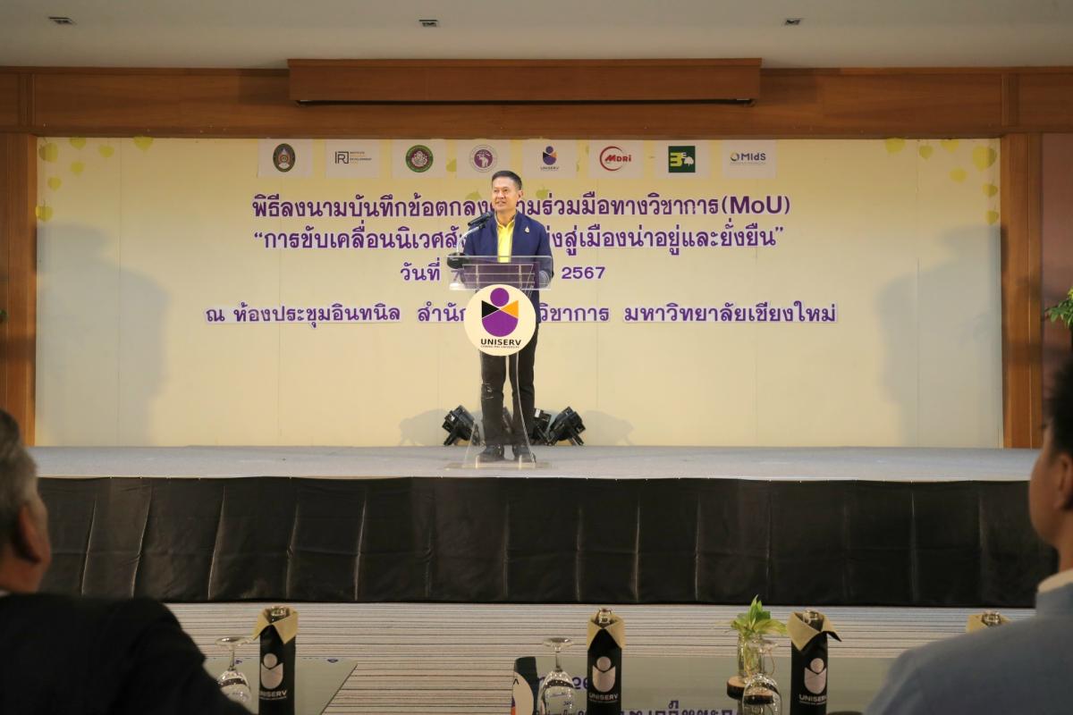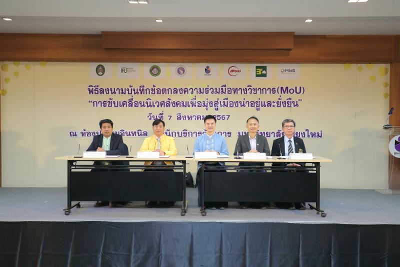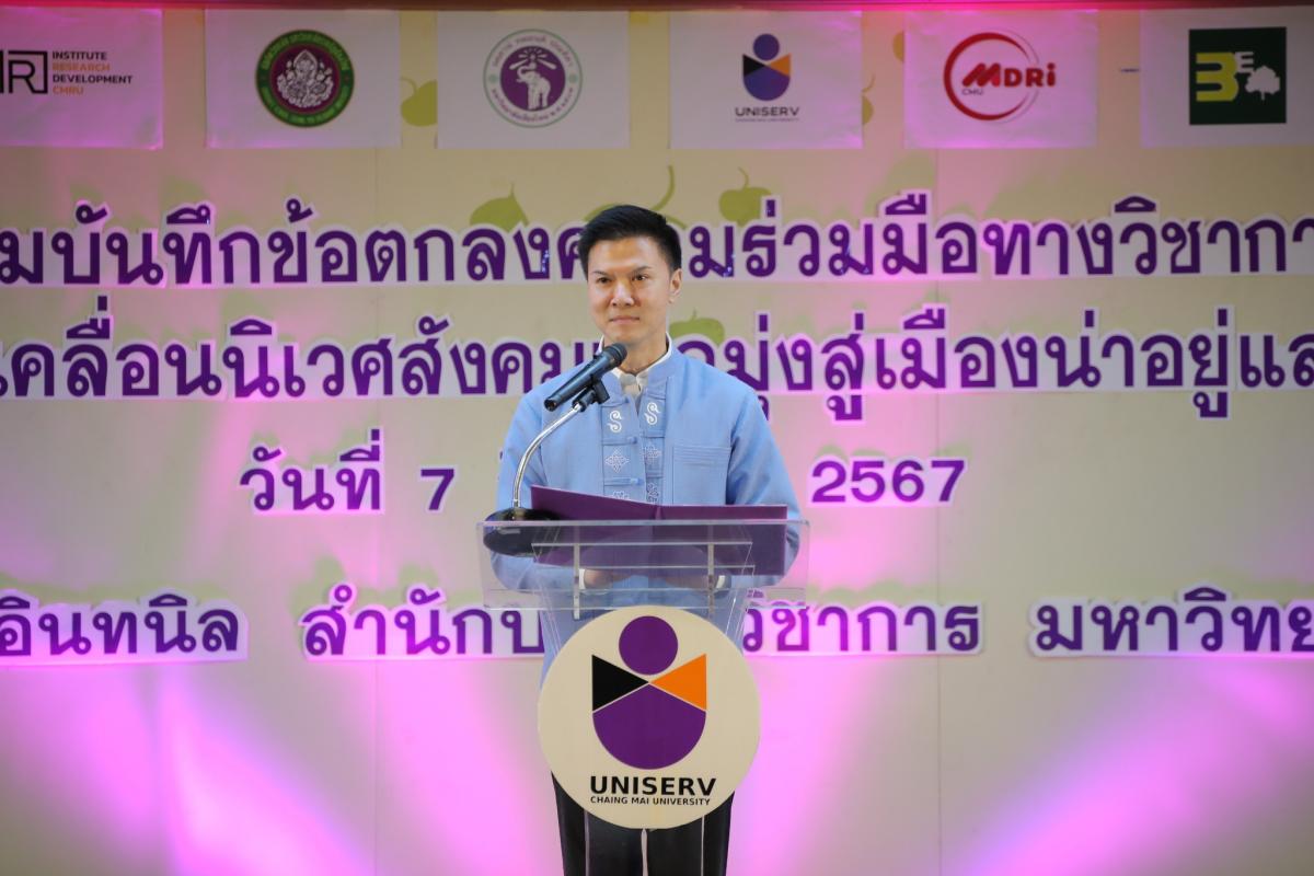 วันพุธที่ 7 สิงหาคม 2567 สำนักบริการวิชาการ มหาวิทยาลัยเชียงใหม่ ร่วมกับ สถาบันวิจัยและพัฒนา มหาวิทยาลัยราชภัฏเชียงใหม่ บัณฑิตวิทยาลัย มหาวิทยาลัยราชภัฏเชียงใหม่ สถาบันวิจัยพหุศาสตร์ มหาวิทยาลัยเชียงใหม่ และวิทยาลัยพหุวิทยาการและสหวิทยาการ ร่วมลงนามบันทึกข้อตกลงความร่วมมือทางวิชาการ "การขับเคลื่อนนิเวศสังคม เพื่อมุ่งสู่เมืองน่าอยู่และยั่งยืน” ณ ห้องอินทนิล ชั้น 1 สำนักบริการวิชาการ มหาวิทยาลัยเชียงใหม่