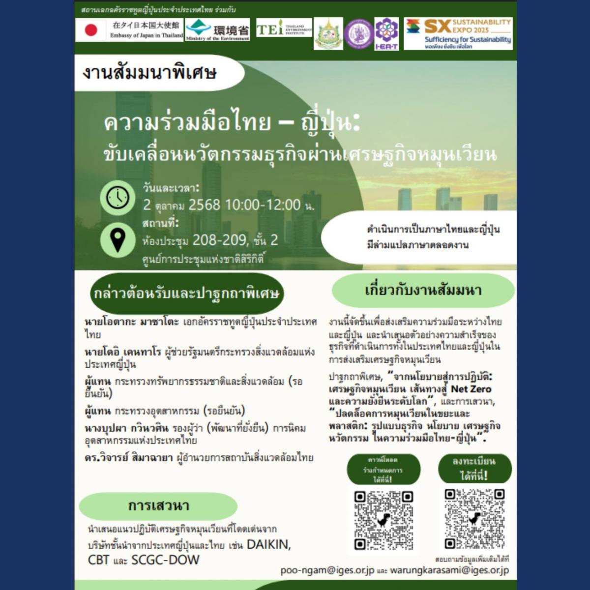 ศ.ปฏิบัติ ดร.เศรษฐ์ สัมภัตตะกุล ร่วมงานสัมมนาพิเศษ "ความร่วมมือไทย-ญี่ปุ่น : ขับเคลื่อนนวัตกรรมธุรกิจผ่านเศรษฐกิจหมุนเวียน"