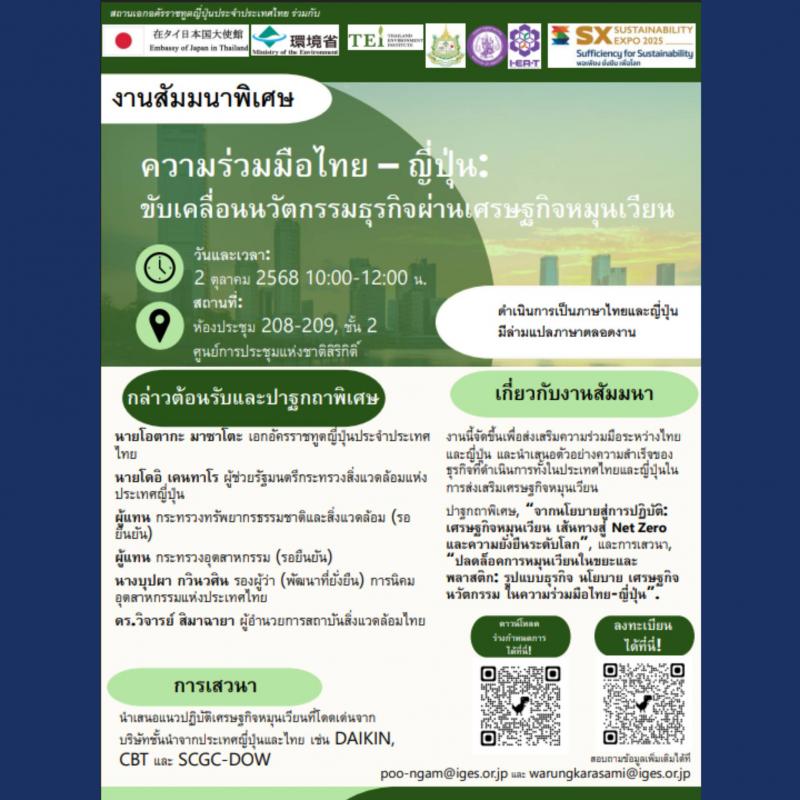 ปลดล็อคการหมุนเวียนในขยะและพลาสติก : รูปแบบธุรกิจ นโยบาย เศรษฐกิจ นวัตกรรม ในความร่วมมือไทย-ญี่ปุ่น